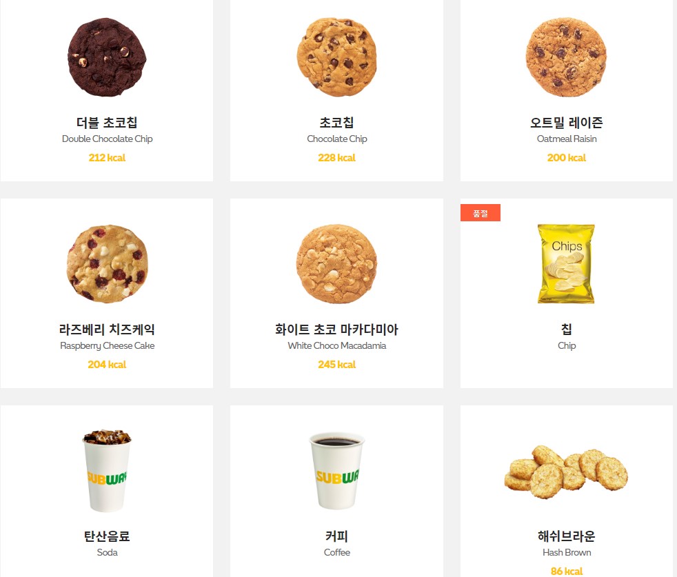 선택한 메뉴를 장바구니에 담고 사이드 메뉴를 추가해주세요! (쿠키, 칩, 웨지/수프, 음료 등)
