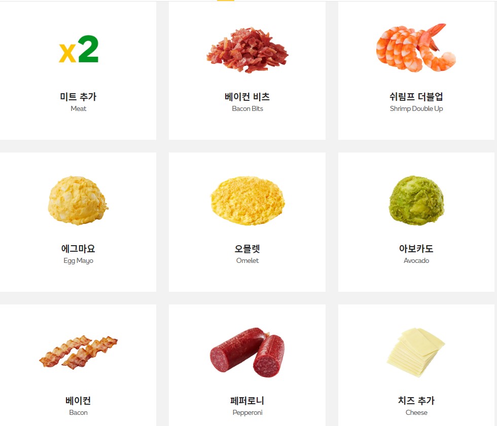 빵을 고르셨나요? 그럼 이젠 추가 하고 싶으신 토핑이 있으시면 선택해주시면 됩니다. 쩝 맛있겠지요?