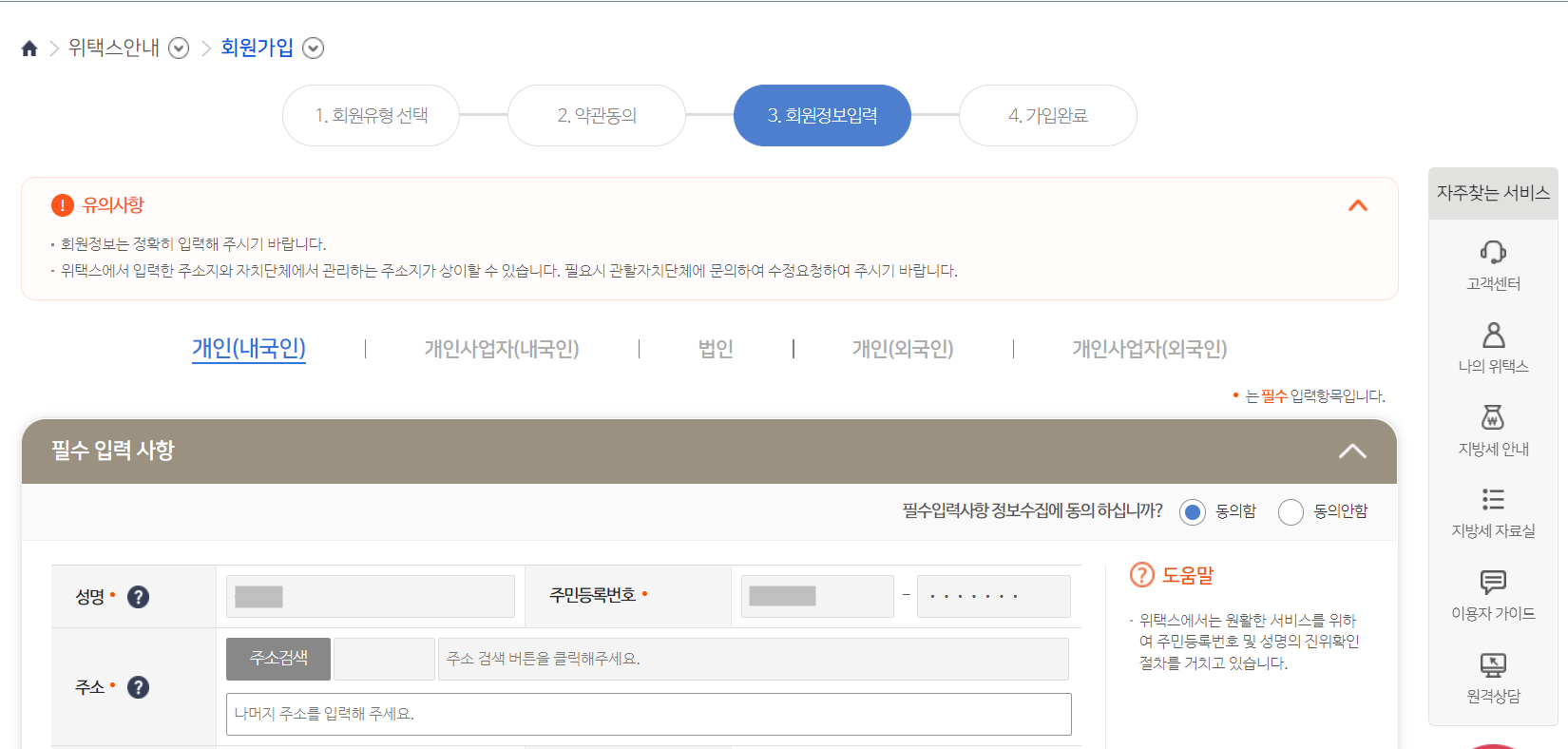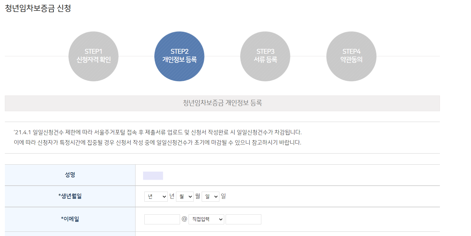 그러면 아래 그림과 같이 개인정보 등록 단계가 나올겁니다. 이름, 이메일, 연락처, 생년 월일 등의 개인정보를 입력해주세요.
