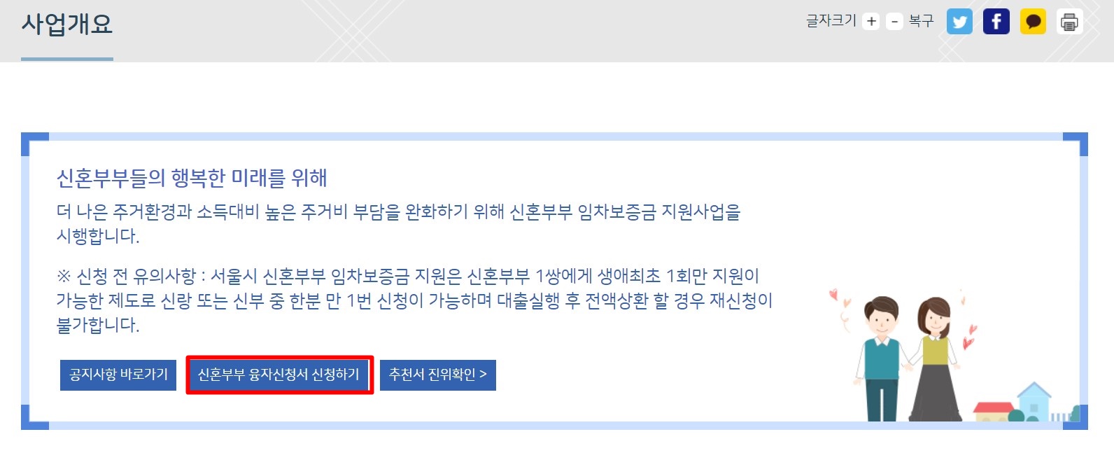 이와 같은 페이지가 보이실겁니다. 여기서 신혼부부 융자신청서 신청하기 버튼을 눌러주세요.